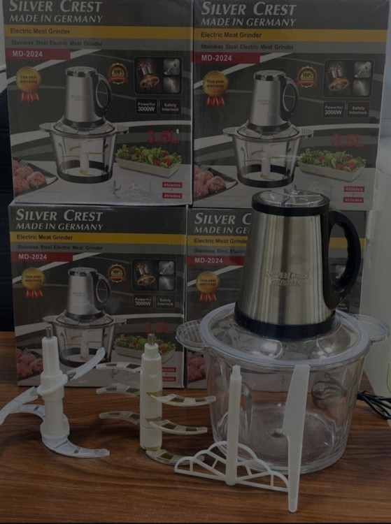 – نام محصول: خردکن – برند: سیلور کرست – مدل2024 – طراحی: آلمان – ساخت: چین – توان موتور: 3000 وات – ظرفیت3.5 لیتر – سرعت: دو سرعته – دسته: دارای دسته سفارشی و کاربردی – ظرف: شیشهای بسیار با کیفیت و نشکن – پایه: ضد لغزش – تعداد تیغه: ۶ تیغه+۴تیغه استیل ضد زنگ– جنس تیغه: تیتانیوم طلایی – نوع سیم پیچ: مسی